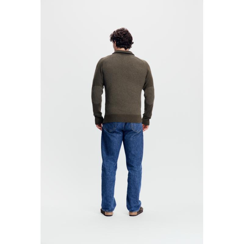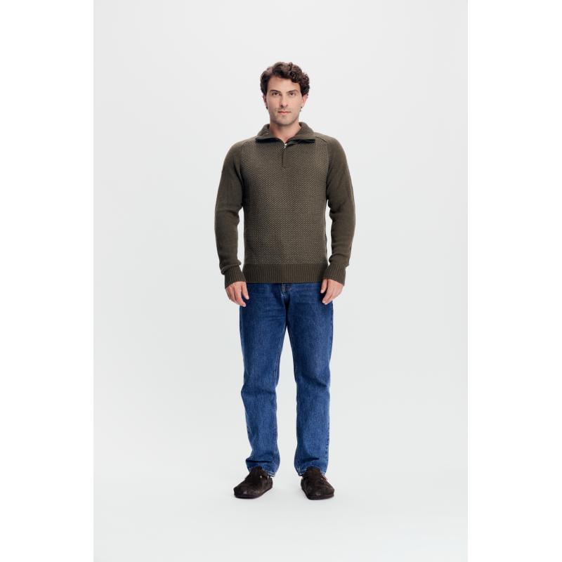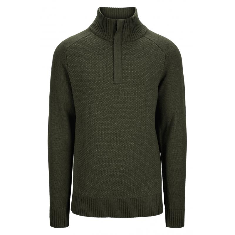 En høyhalset, tykk og komfortabel ullgenser med mønster. Halsen er en litt lav høy hals, noe som gjør genseren mer allsidig til hverdagsbruk samtidig som den er knallfin på tur i det fri. Genseren er laget av en unik blanding av tykk, varm lammeull spunnet sammen med myk bambusviskose og modal fibre. 100 % superfin merinoull er blandet sammen med lammeullen på innsiden av halsen og i bunn av ermene, for å beskytte mot unødvendig kløe der huden er mest sensitiv.
