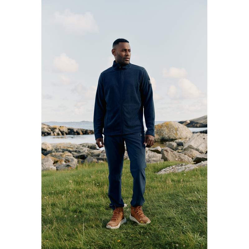 En lett og myk microfleece i helmønstret materiale. Den har sidelommer med glidelås og justering nederst. Passer som mellomlag eller som ytterjakke på varmere dager.