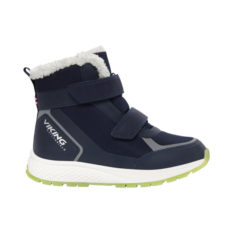 Overrask barnet ditt med Equip Glow Warm WP, som er robuste sko laget for å lyse opp dagen (eller natten) samme hva den måtte bringe. Den mellomhøye overdelen er utstyrt med en slitesterk høy kant, en beskyttende støtteramme og doble borrelåsfester som gjør det lett for barnet å justere dem selv. Vikings Watershield-membran beskytter føttene i vått vær, mens et varmt, isolerende lag holder kulden ute. Store reflekspaneler bidrar til bedre synlighet, og når lysene slukkes, lyser overdelen i mørket!